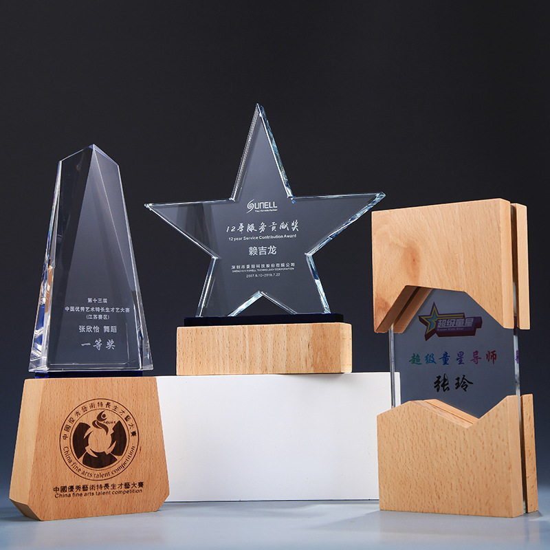 Star trophies, award plaques, trophy cups, and award standees can be custom engraved for employees, friends, or family members. From sports trophies to employee recognition awards to funny office awards and funny awards for friends and family. These wooden trophies make great corporate gifts, unique gifts for employees, personalized gifts for friends, and the best family gifts.